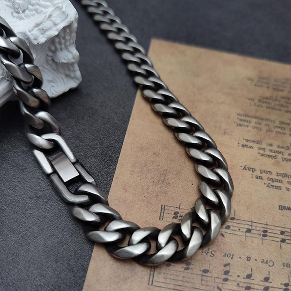 MIGNOLO啞光復古做舊古巴項鍊 10MM 鈦鋼項鍊 古銀 復古 街頭