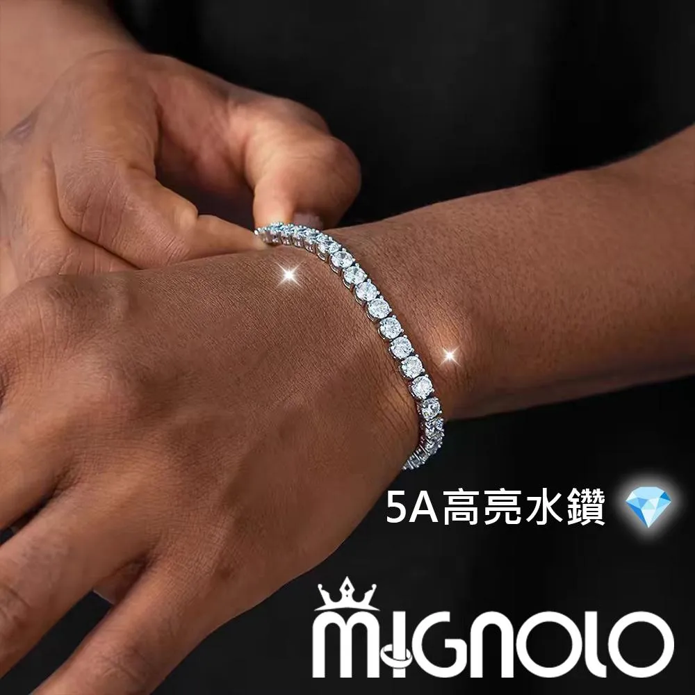 MIGNOLO冰河手鍊|5A水鑽手鍊 高閃CZ鑽排 滿鑽排鑽手鍊 網球手鍊 鈦鋼手鍊 手環 嘻哈手鍊 男手鍊