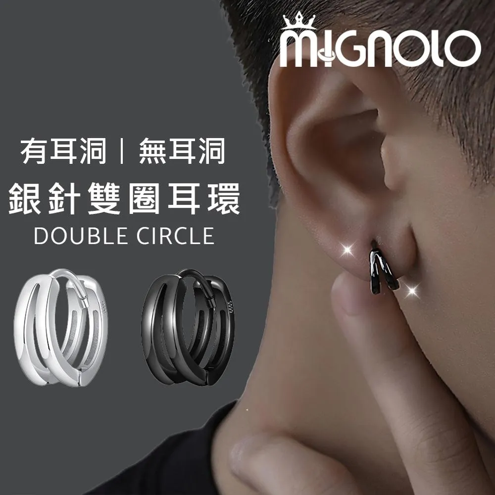MIGNOLO騎士耳環 銀針耳環 男生耳環 黑色耳環 高級感 黑色經典 雙圈耳環 配飾 耳飾 個性耳環 潮男 耳扣