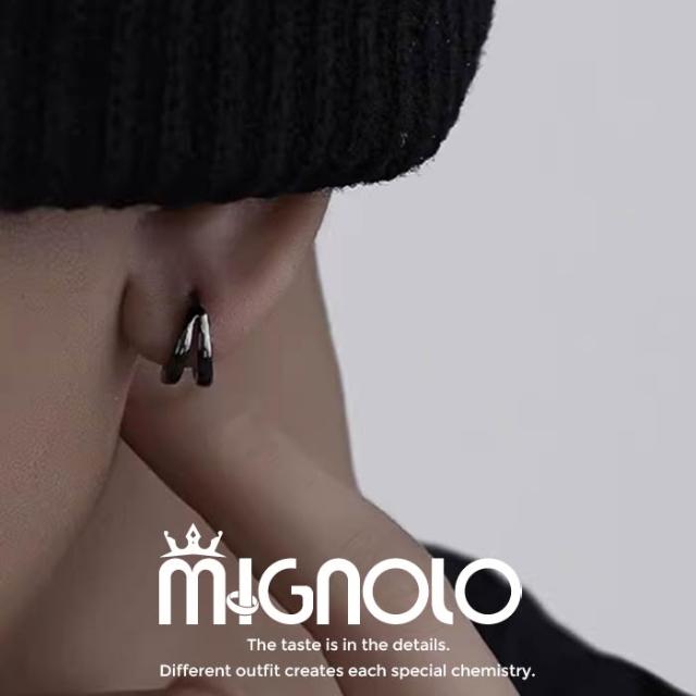 MIGNOLO騎士耳環 銀針耳環 男生耳環 黑色耳環 高級感 黑色經典 雙圈耳環 配飾 耳飾 個性耳環 潮男 耳扣