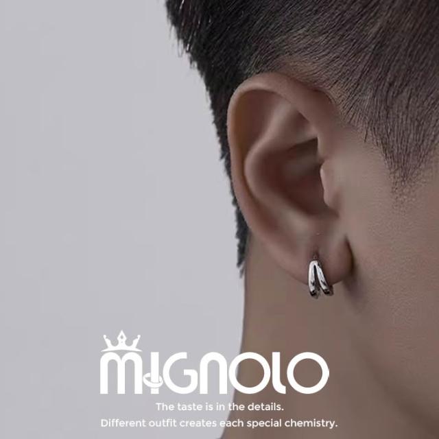 MIGNOLO騎士耳環 銀針耳環 男生耳環 黑色耳環 高級感 黑色經典 雙圈耳環 配飾 耳飾 個性耳環 潮男 耳扣