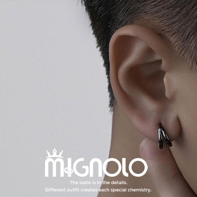 MIGNOLO騎士耳環 銀針耳環 男生耳環 黑色耳環 高級感 黑色經典 雙圈耳環 配飾 耳飾 個性耳環 潮男 耳扣
