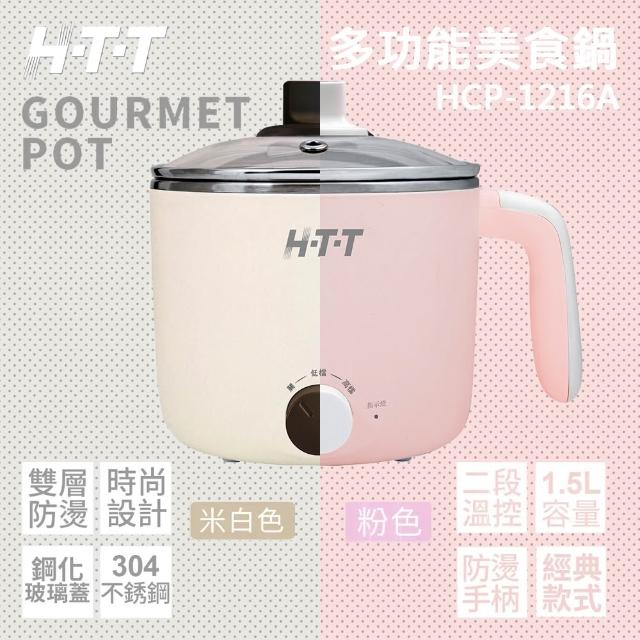 HTT 1.5公升大容量304不鏽鋼美食鍋 HCP-1216A 粉色/白色兩色任選 電煮鍋 小火鍋 快煮鍋 電鍋 蒸煮鍋