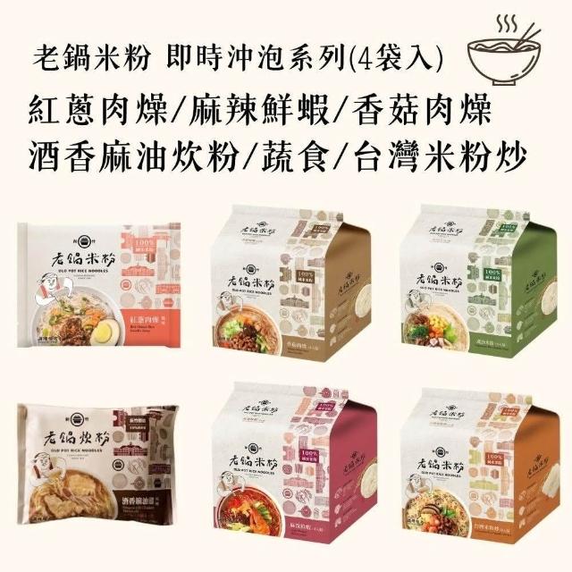 食在美好老鍋米粉 即時沖泡米粉系列-純米香菇肉燥/紅蔥肉燥/麻辣鮮蝦/酒香麻油炊粉(60gx4入/袋;口味任選)