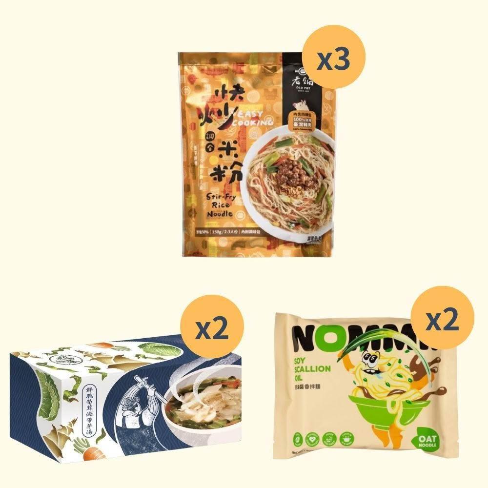 食在美好輕食免運組 (筍茸海帶芽湯25.5gX16包、老鍋快炒米粉150gX3袋、蔥油醬香燕麥拌麵116gX2包) 自煮簡單美味
