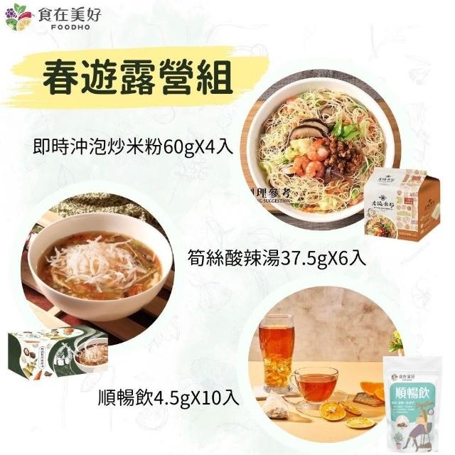 食在美好食在美好 春遊露營組 即時沖泡炒米粉60gX4入、筍絲酸辣湯37.5gX6入、順暢飲4.5gX10入