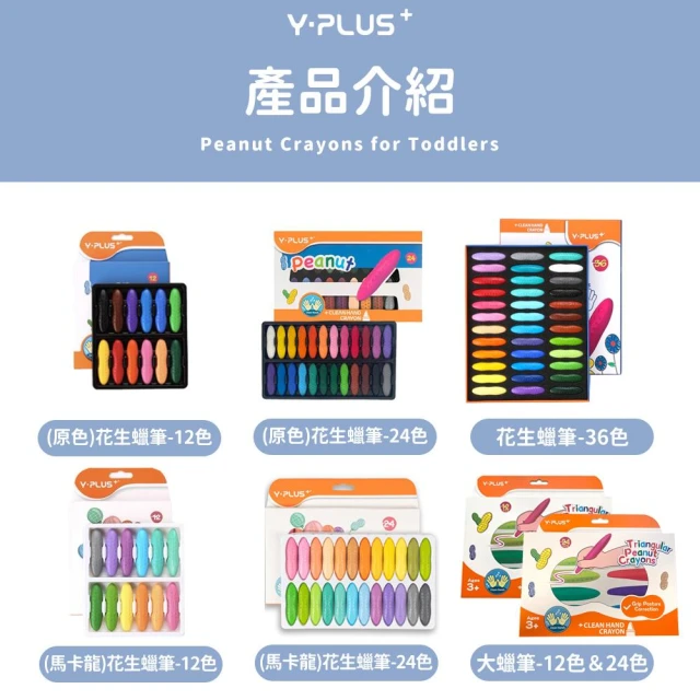 英國 YPLUS 花生蠟筆 12/24/36色 大花生蠟筆 安全無毒 水溶性畫筆 兒童 文具 繪畫 SGS檢驗合格 收納盒 塗鴉本 公司貨