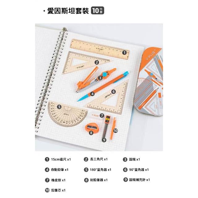 英國 YPLUS 愛因斯坦數學套裝 文具組 數學 套組 量角器 尺 圓規 筆 學生文具 刻度清晰 台灣正版代理