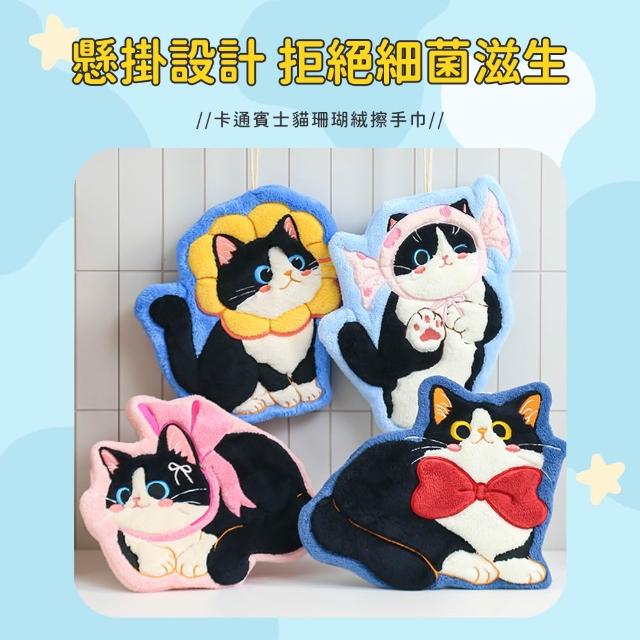卡通賓士貓珊瑚絨擦手巾 貓咪擦手巾