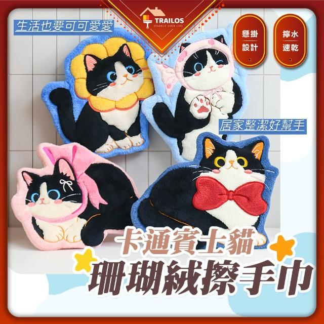 卡通賓士貓珊瑚絨擦手巾 貓咪擦手巾
