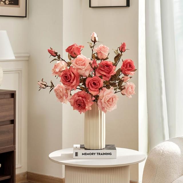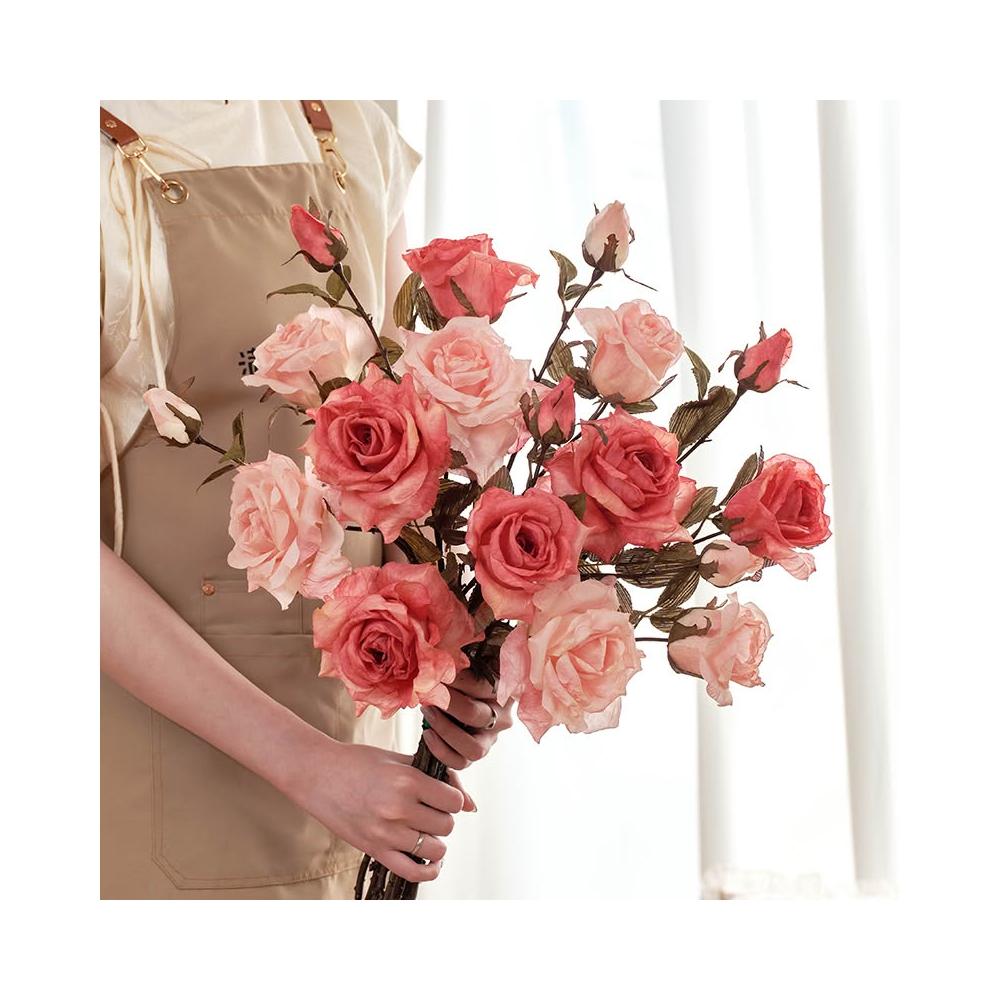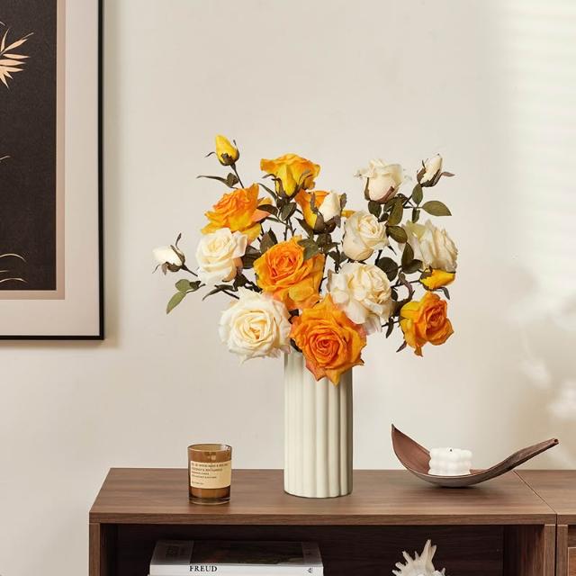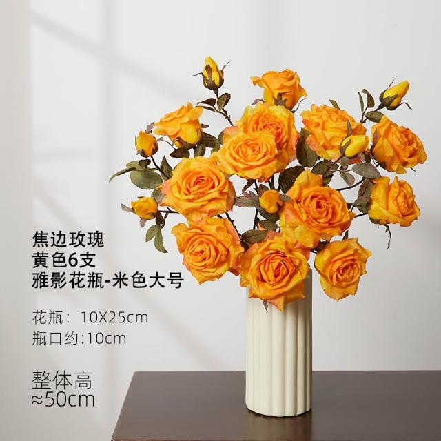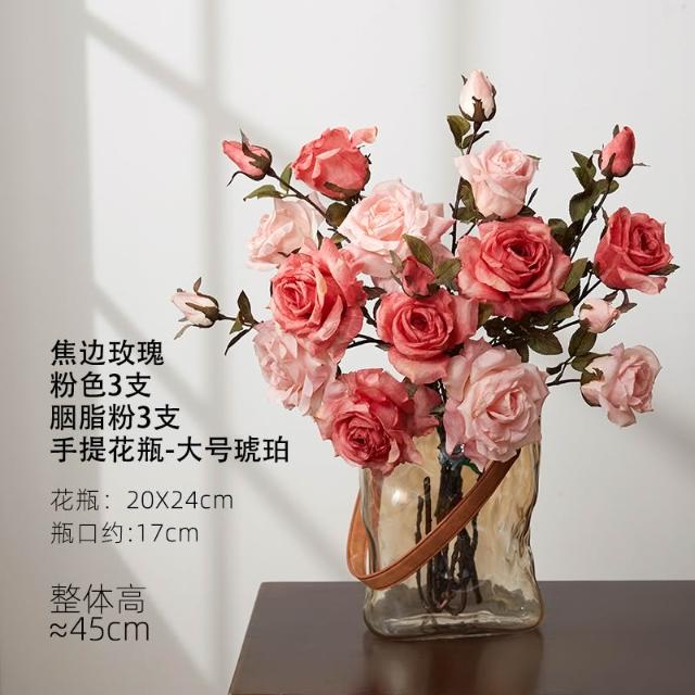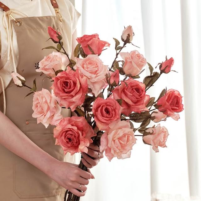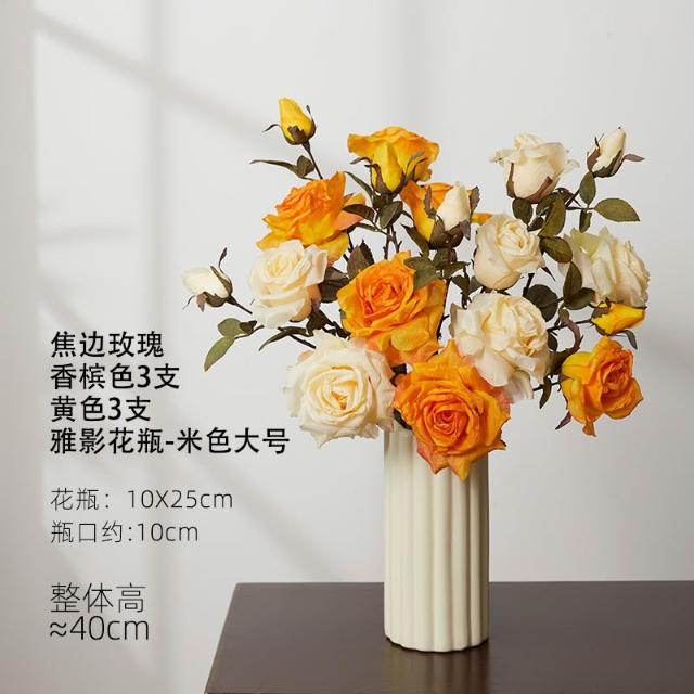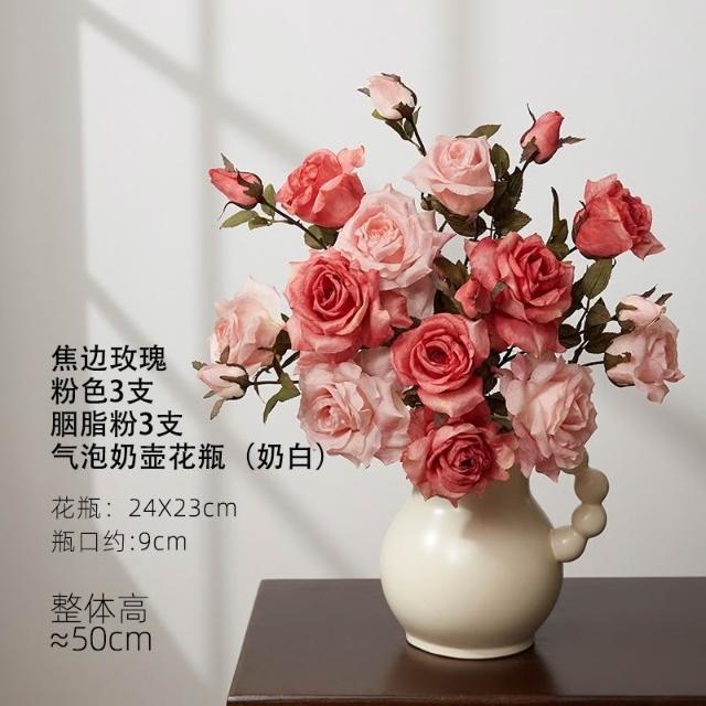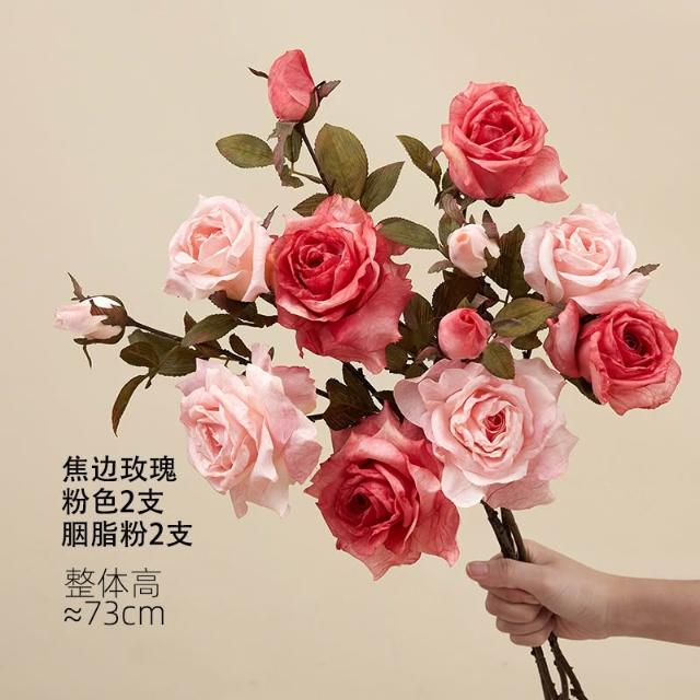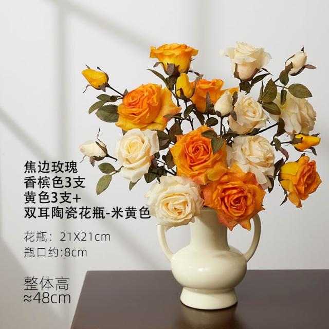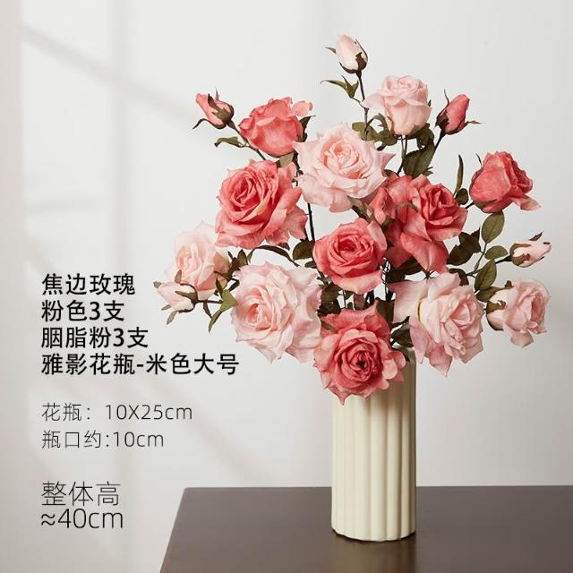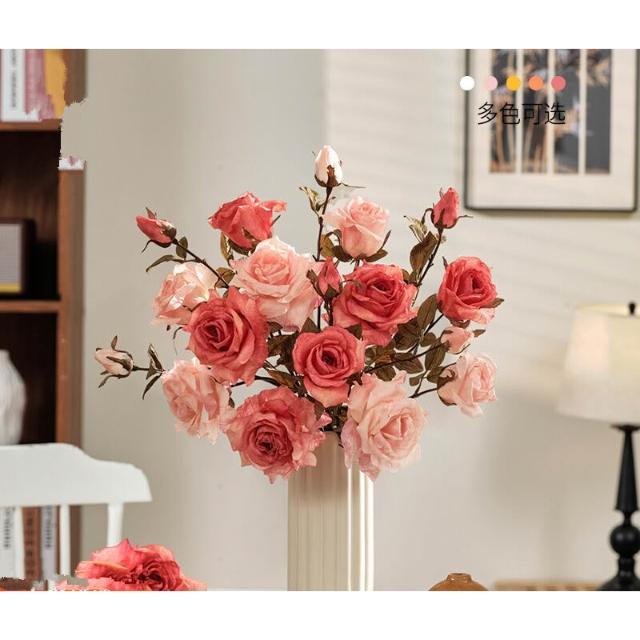 假花仿真花玫瑰模擬假花客廳裝飾絹花卉擺設餐桌乾燥花擺飾輕奢高階高級仿生花