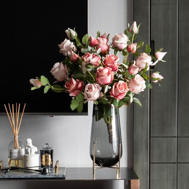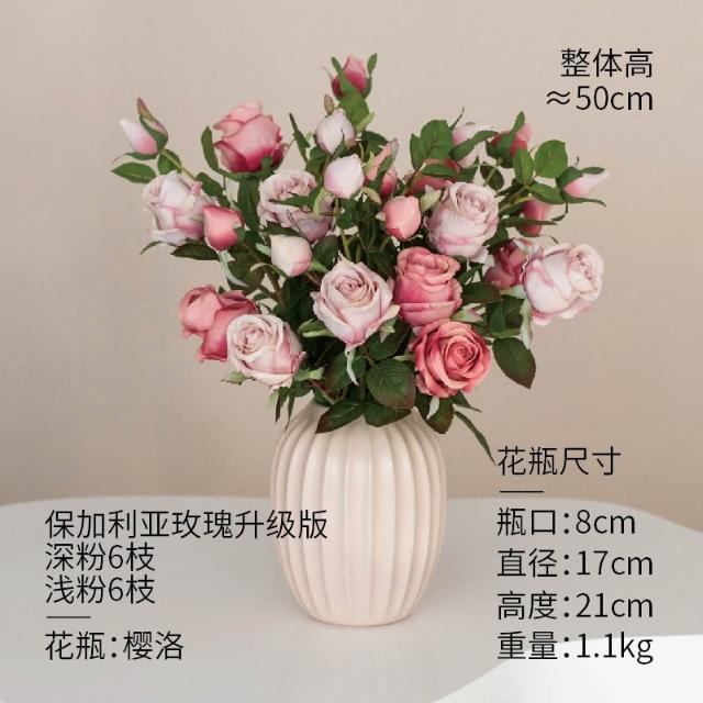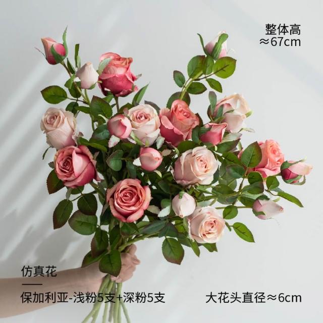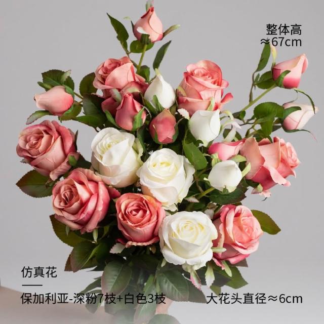 喜可xekoro居家精品 輕奢高階玫瑰花仿真花客廳假花擺設高級餐桌插花裝飾擺件乾燥花花束