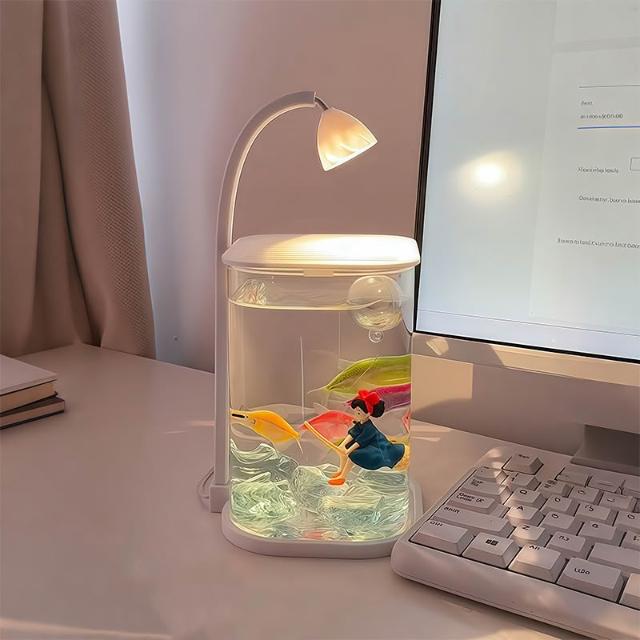 喜可xekoro桌上裝飾擺件懶人魚缸小型造景擺件鬥魚專用小夜燈擺件