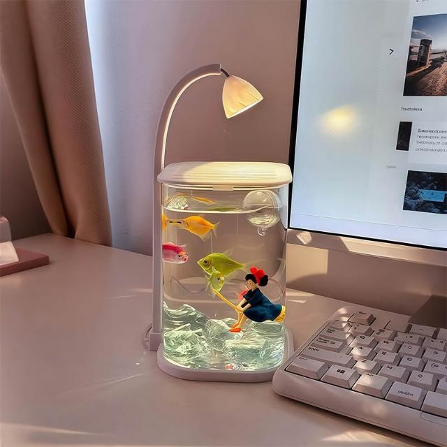 喜可xekoro桌上裝飾擺件懶人魚缸小型造景擺件鬥魚專用小夜燈擺件