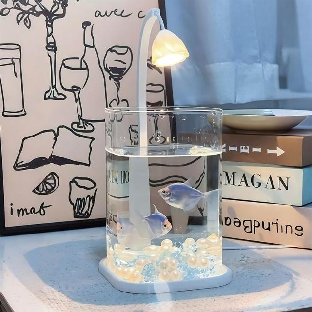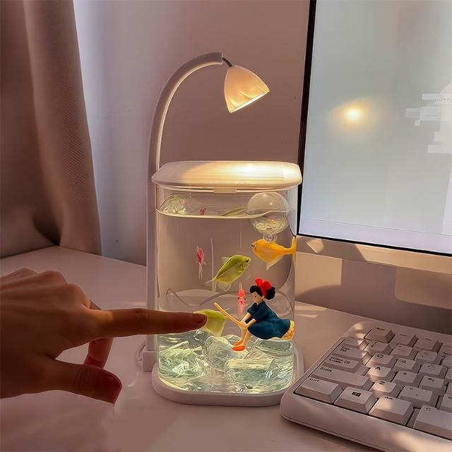 喜可xekoro桌上裝飾擺件懶人魚缸小型造景擺件鬥魚專用小夜燈擺件