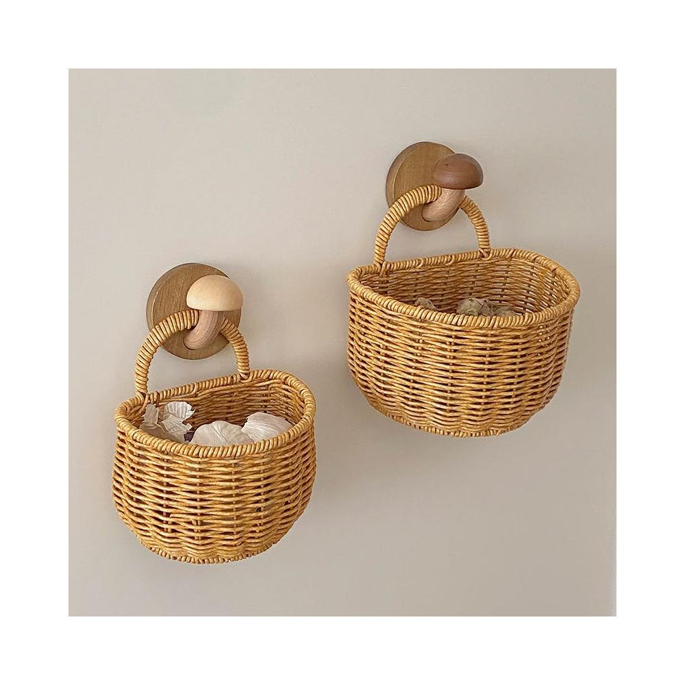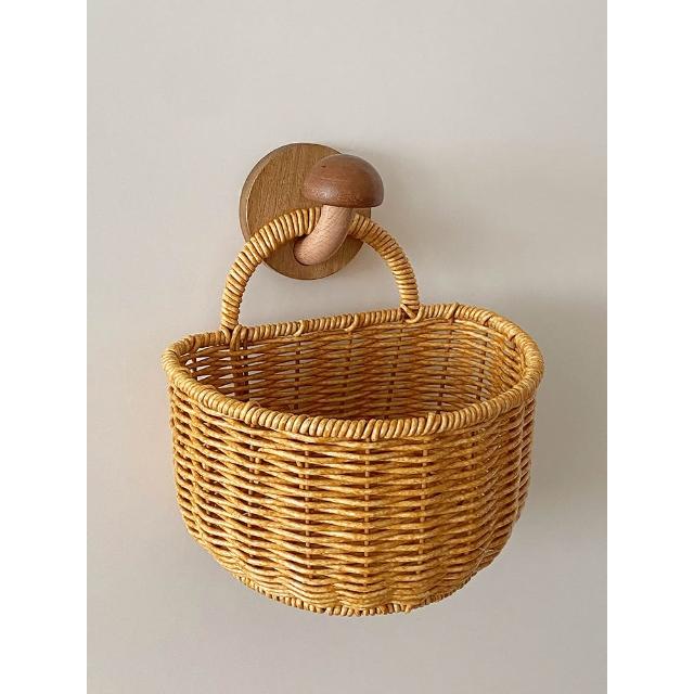 喜可xekoro廚房蔥薑蒜收納籃壁掛仿藤編織籃復古手提小籃水果籃花籃雞蛋籃