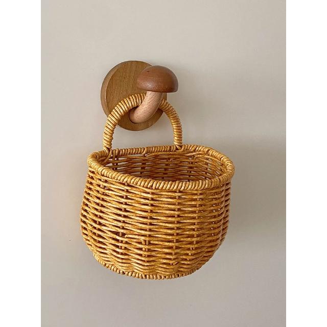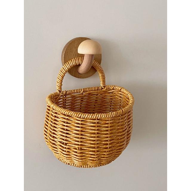 喜可xekoro廚房蔥薑蒜收納籃壁掛仿藤編織籃復古手提小籃水果籃花籃雞蛋籃