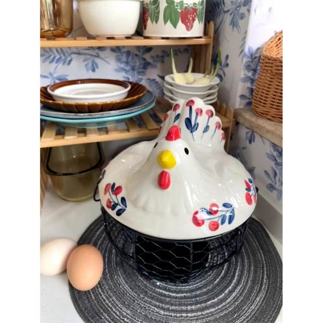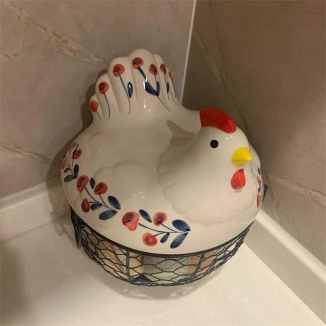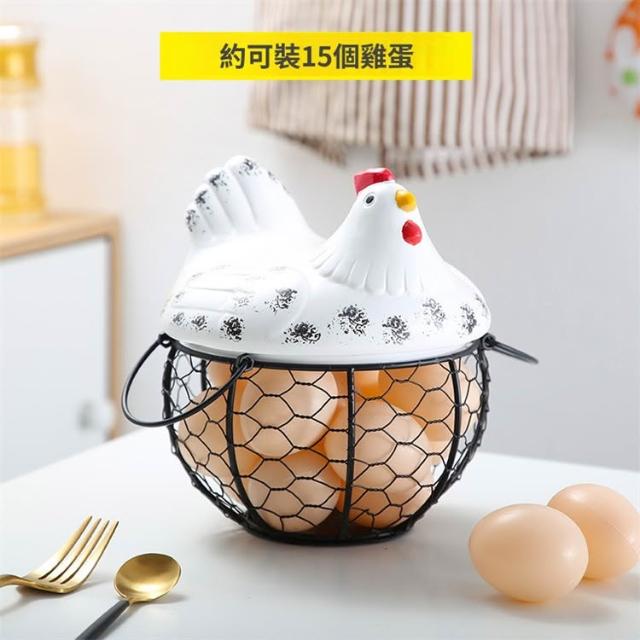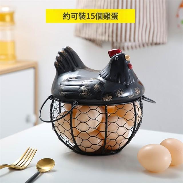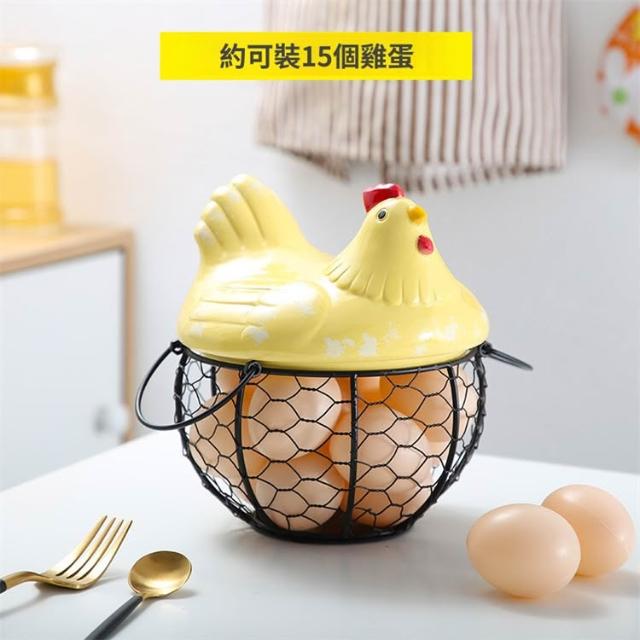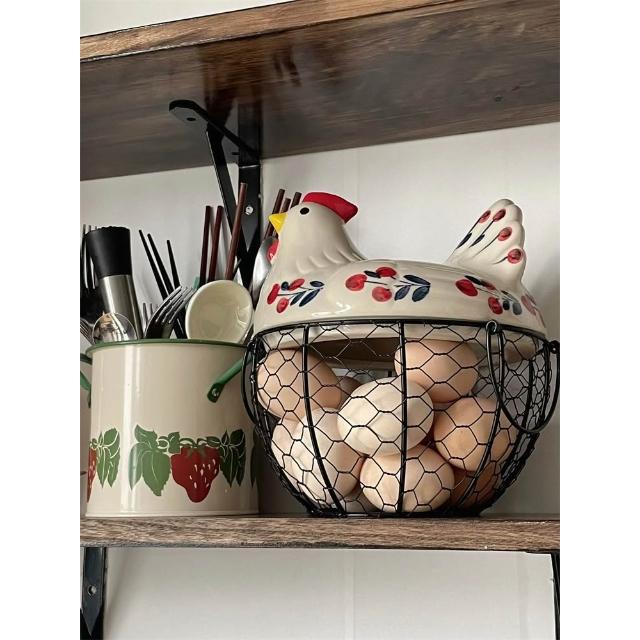 喜可xekoro雞蛋收納籃子創意陶瓷母雞鐵編籃廚房桌面裝飾擺飾水果雞蛋籃個性