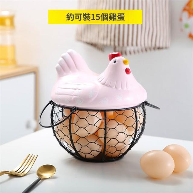 喜可xekoro雞蛋收納籃子創意陶瓷母雞鐵編籃廚房桌面裝飾擺飾水果雞蛋籃個性