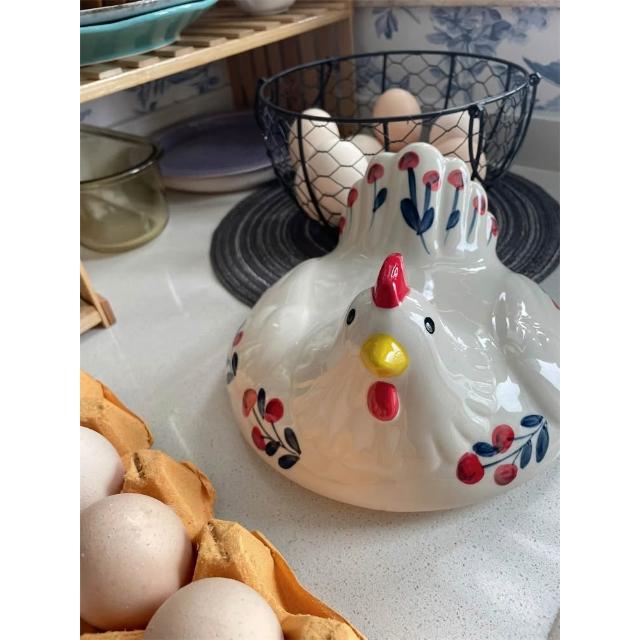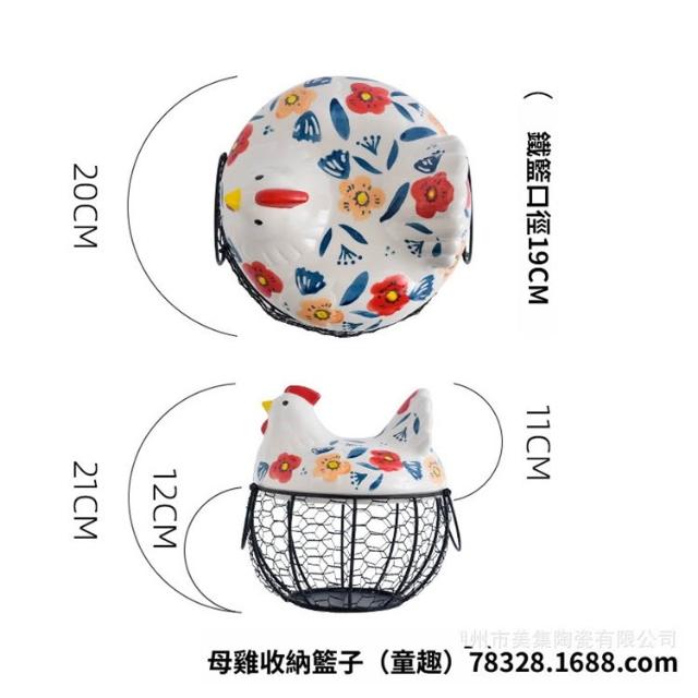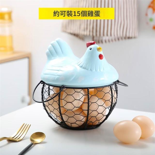 喜可xekoro雞蛋收納籃子創意陶瓷母雞鐵編籃廚房桌面裝飾擺飾水果雞蛋籃個性