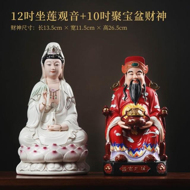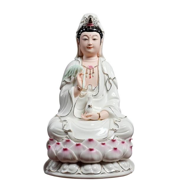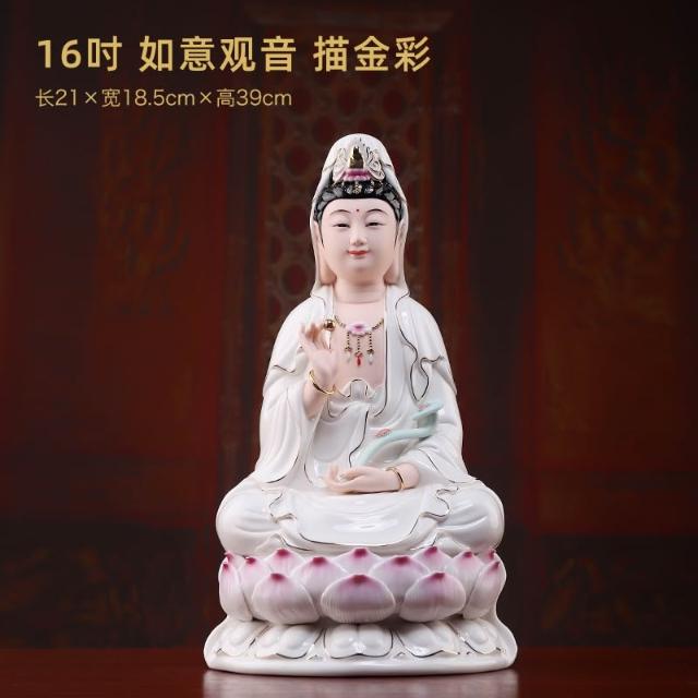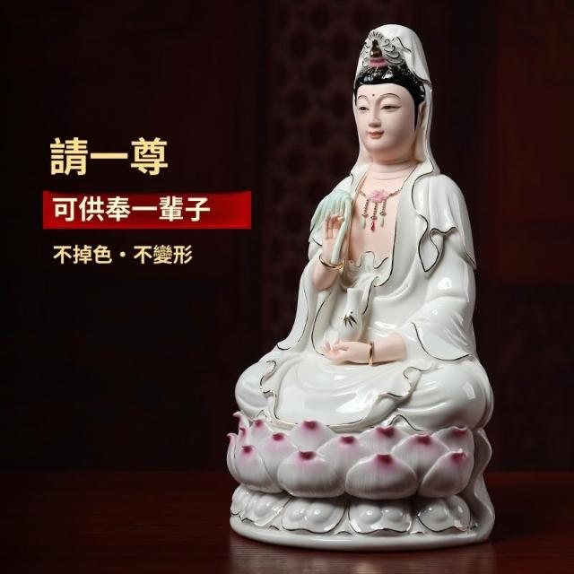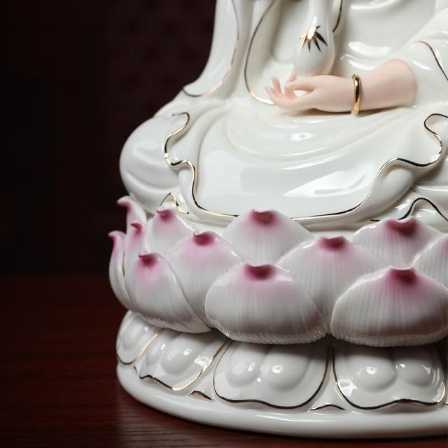 喜可xekoro陶瓷坐蓮南海觀音菩薩佛像客廳家用供奉觀世音菩薩觀音像擺飾