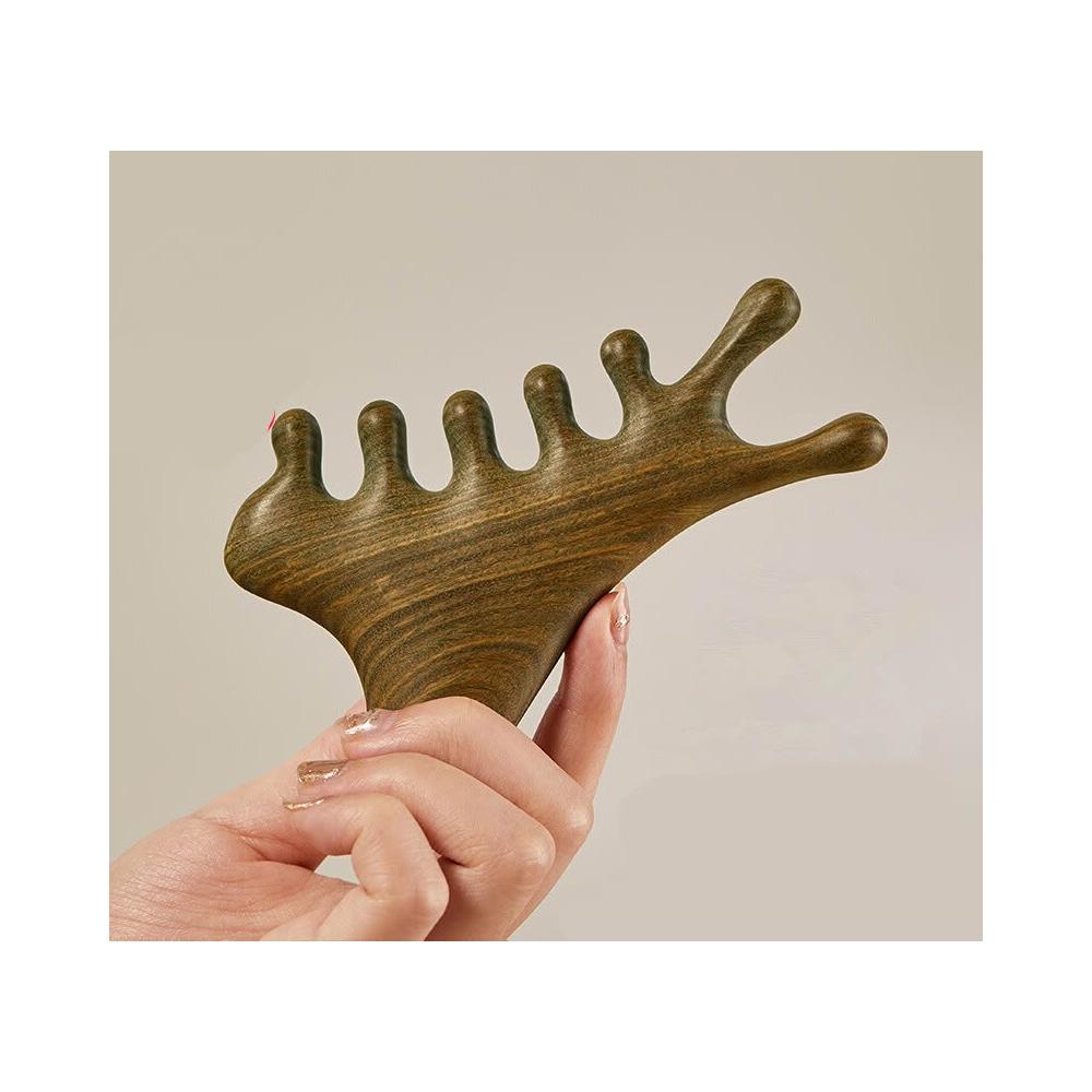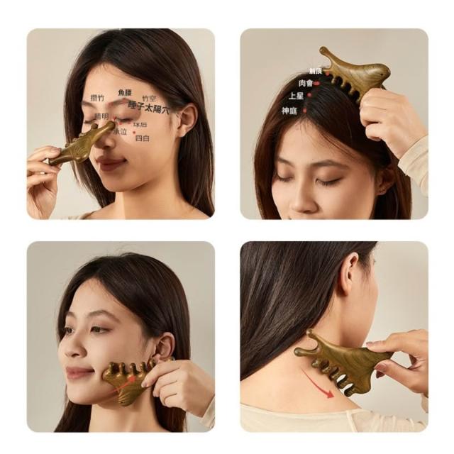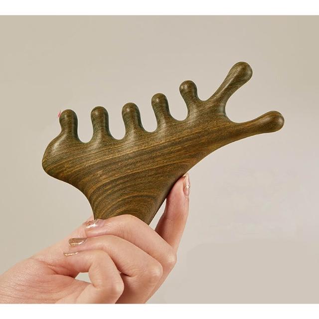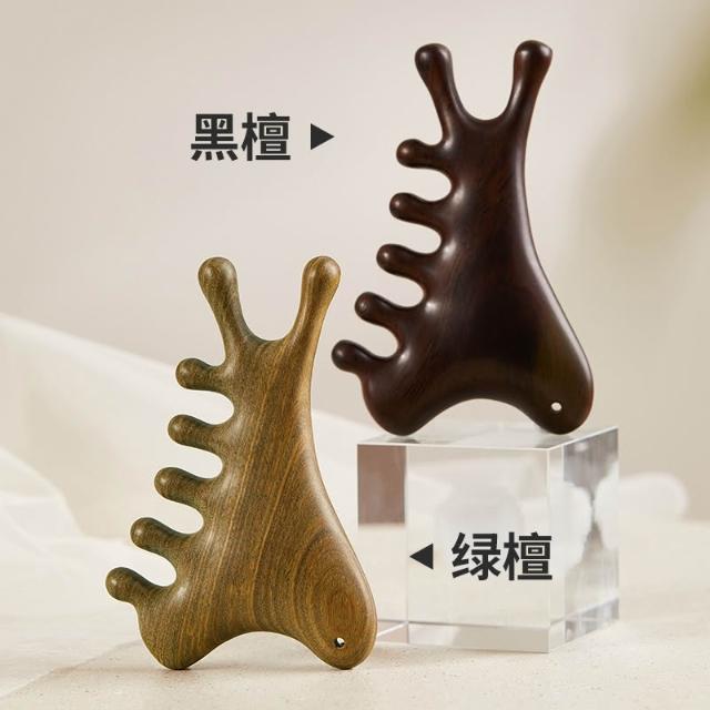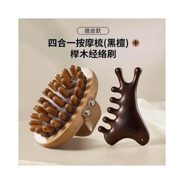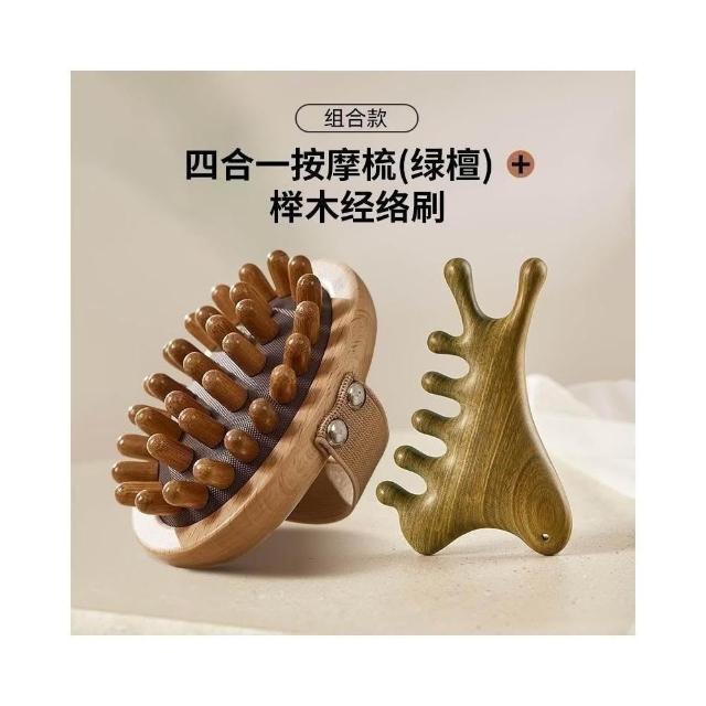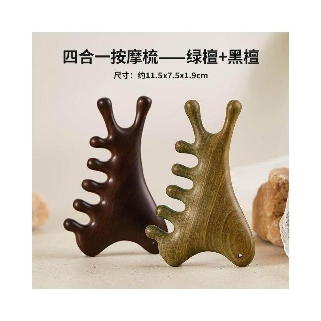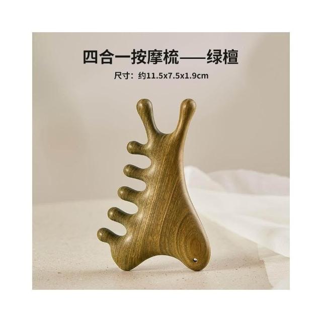 喜可xekoro四合一多功能按摩梳綠檀頭療疏通經絡刮痧點穴眼部臉提拉