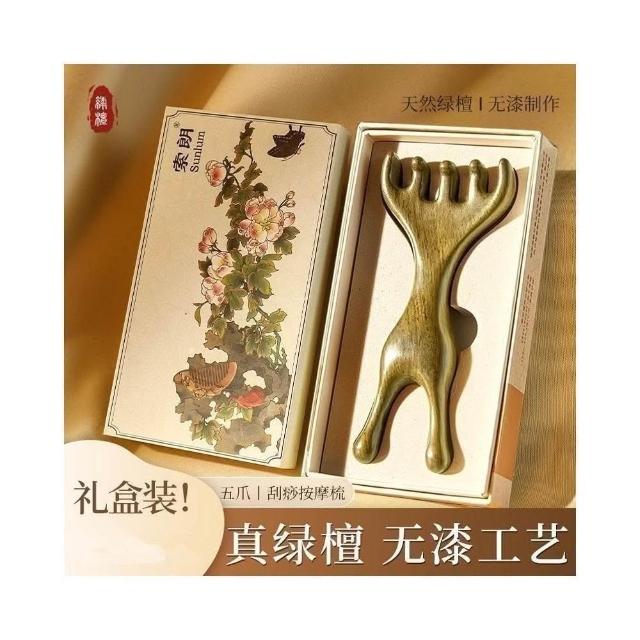 喜可xekoro天然黑檀木頭皮經絡按摩梳女鹿角頭疏通神器脫髮家用刮痧五爪防