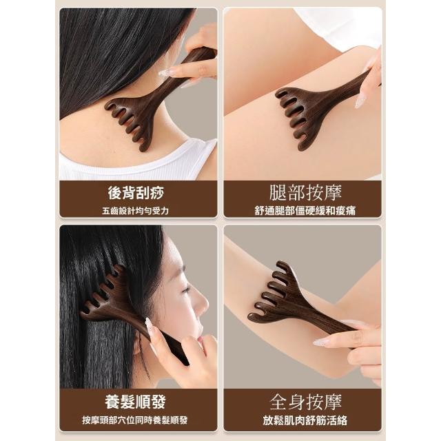 喜可xekoro天然黑檀木頭皮經絡按摩梳女鹿角頭疏通神器脫髮家用刮痧五爪防