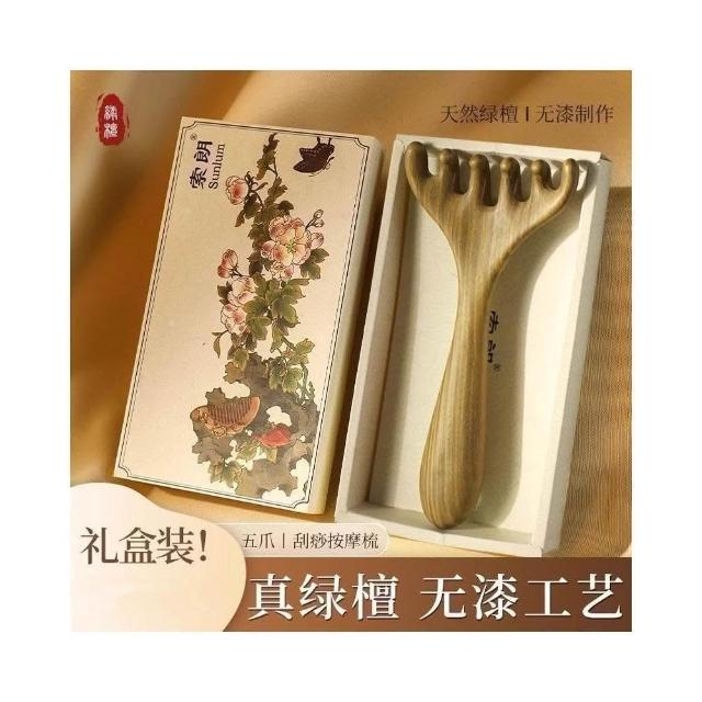 喜可xekoro天然黑檀木頭皮經絡按摩梳女鹿角頭疏通神器脫髮家用刮痧五爪防