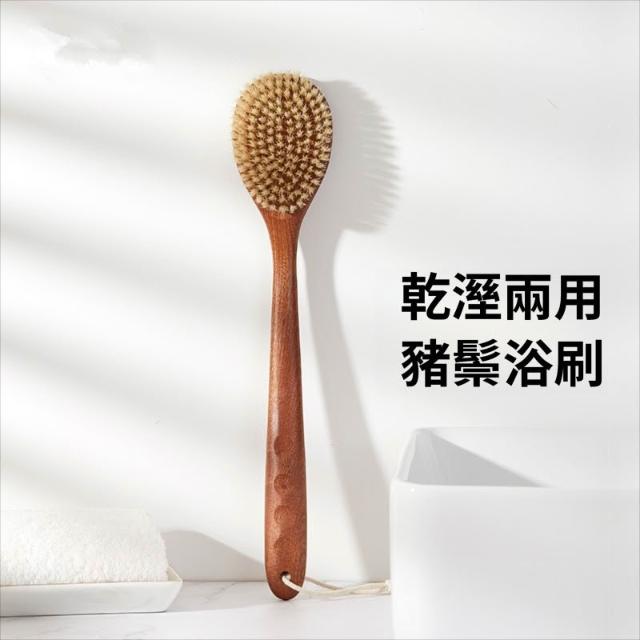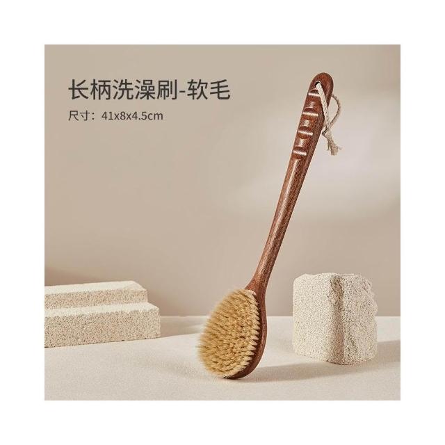喜可xekoro木質洗澡刷猪鬃毛刷美體搓背長柄身體刷乾刷背軟毛搓澡沐浴刷