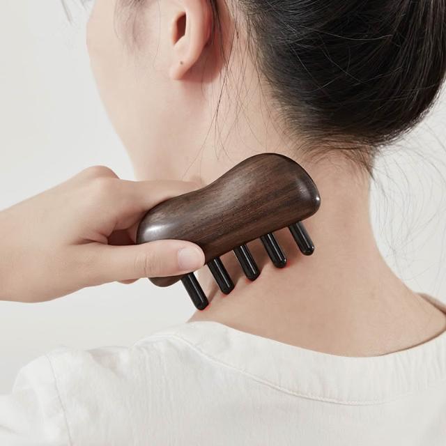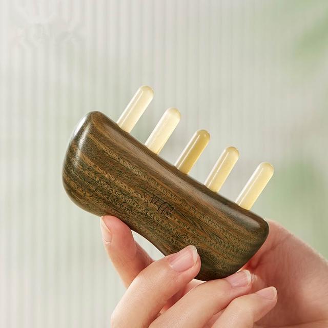 喜可xekoro牛角梳羊角頭經絡按摩梳多功能家用寬齒頭皮檀木梳大齒梳