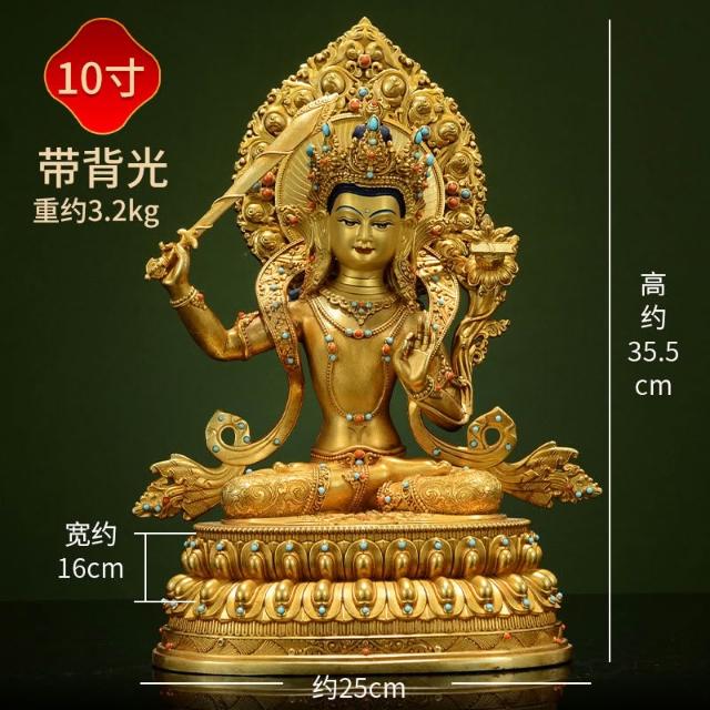 喜可xekoro全鎏金《文殊菩薩》精工銅雕室內家用《文殊師利》銅佛像擺飾