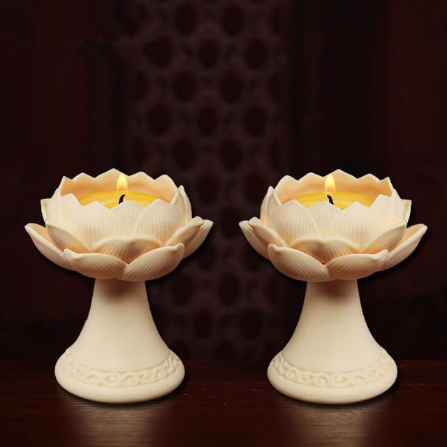 喜可xekoro陶瓷蓮花燈燭台台座家用供奉蠟燭台佛堂佛具用品油燈盞燈座