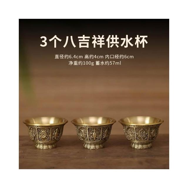 喜可xekoro黃銅八吉祥供水杯家用供奉聖水杯供碗八供淨水杯財神觀音佛前擺件