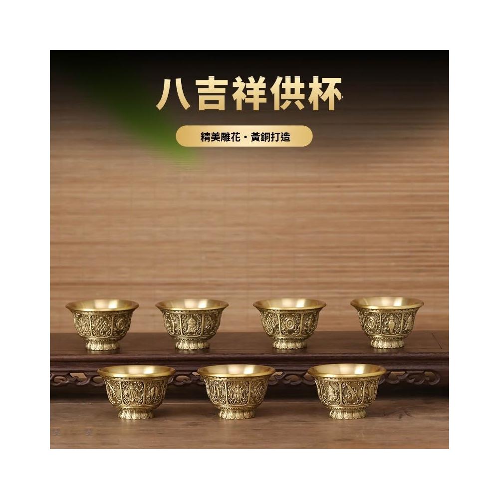 喜可xekoro黃銅八吉祥供水杯家用供奉聖水杯供碗八供淨水杯財神觀音佛前擺件