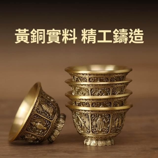 喜可xekoro黃銅八吉祥供水杯家用供奉聖水杯供碗八供淨水杯財神觀音佛前擺件