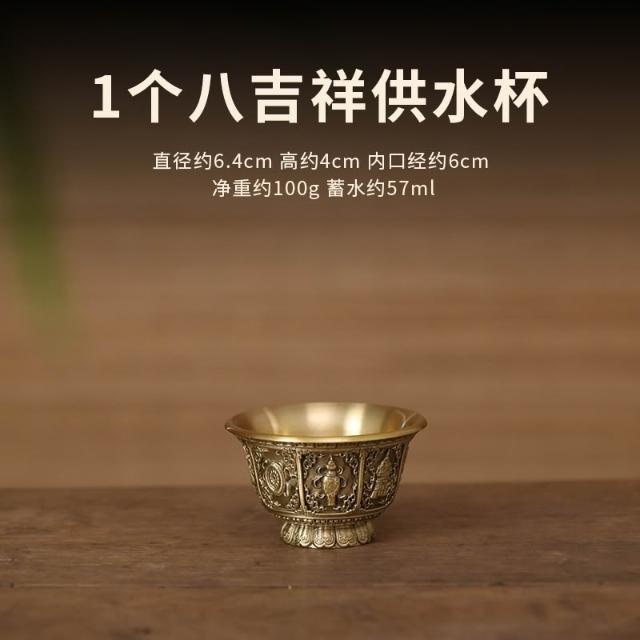 喜可xekoro黃銅八吉祥供水杯家用供奉聖水杯供碗八供淨水杯財神觀音佛前擺件
