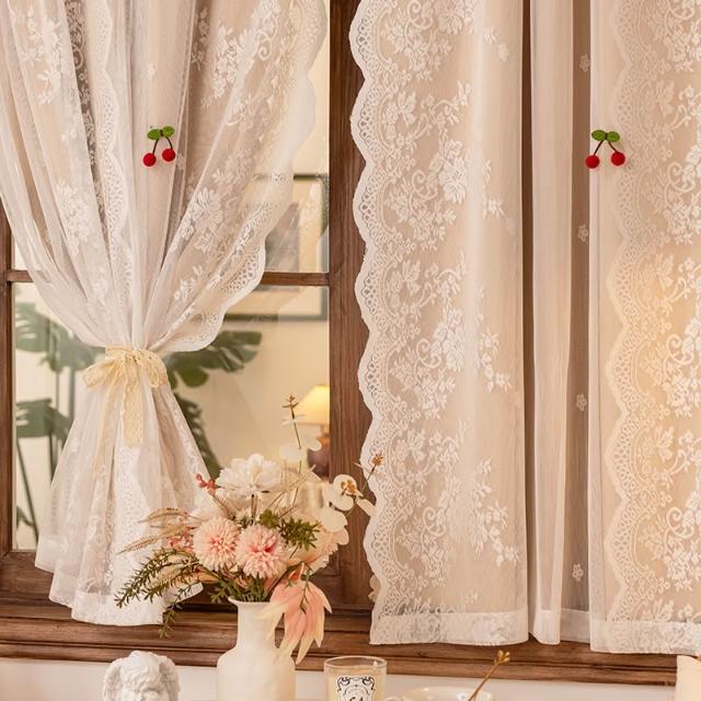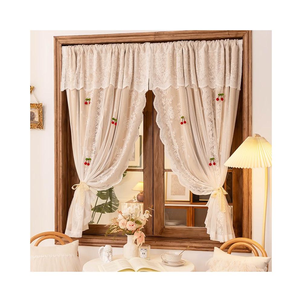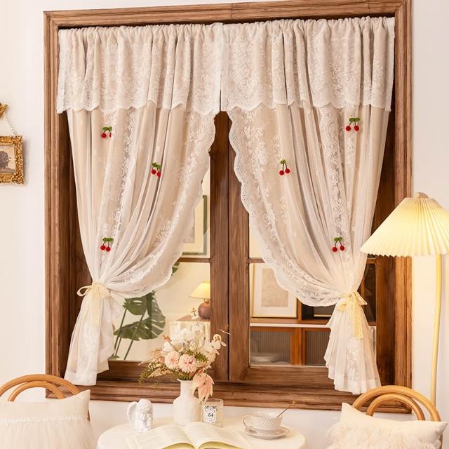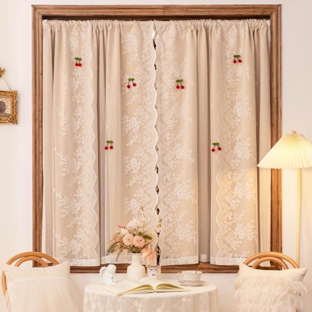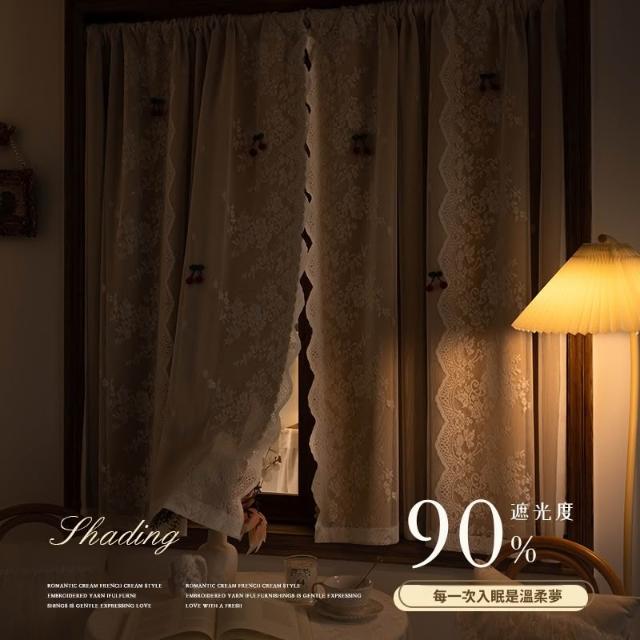 喜可xekoro法式遮光窗簾臥室女孩ins公主風蕾絲雙層一體免打孔飄窗半簾門簾