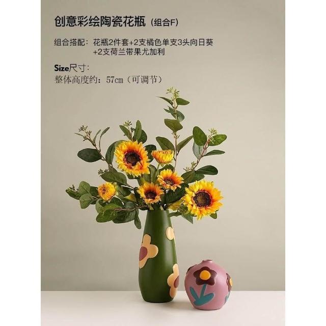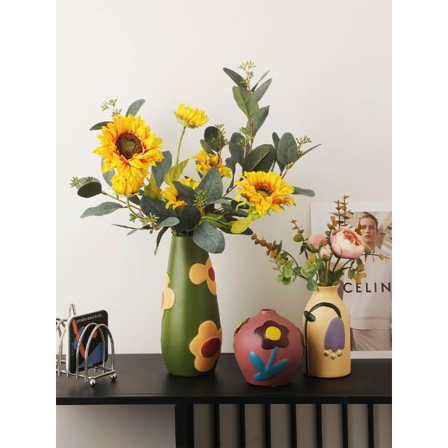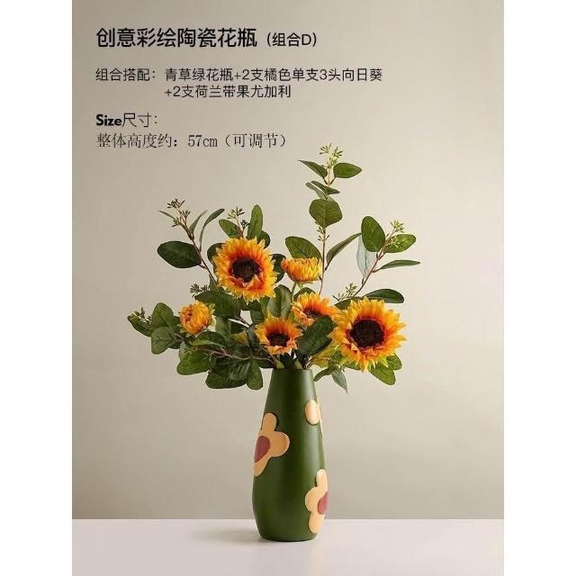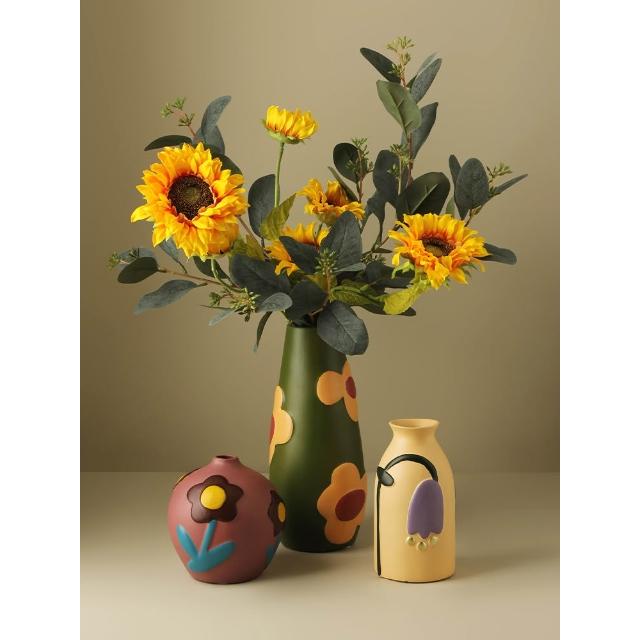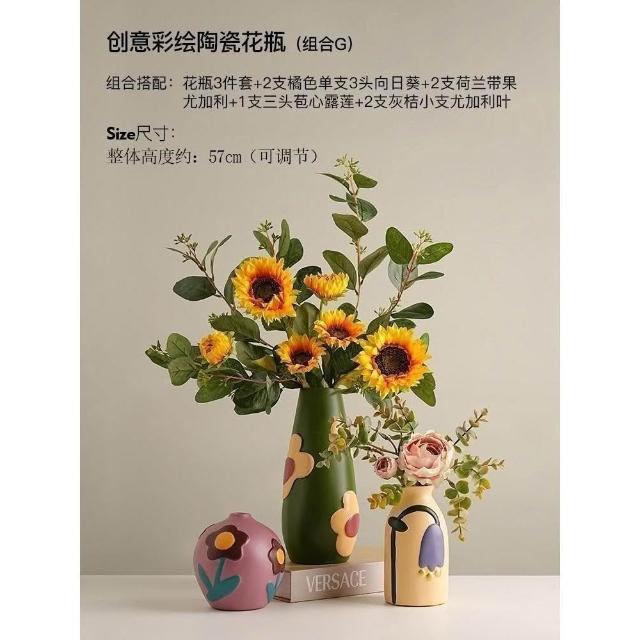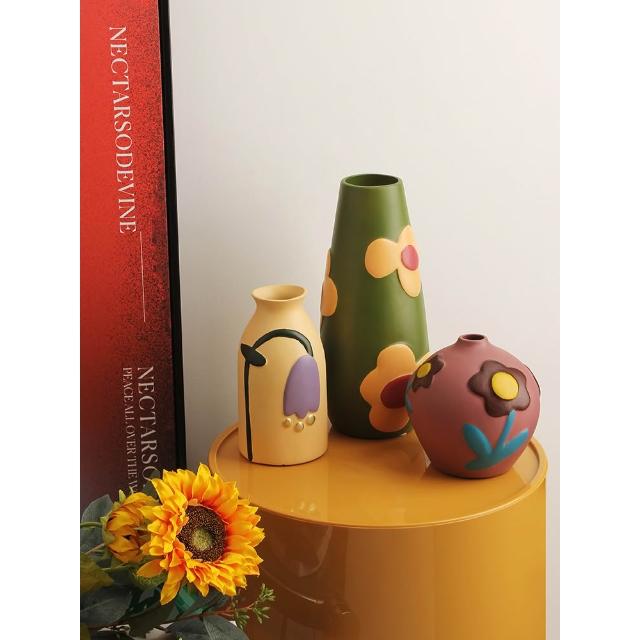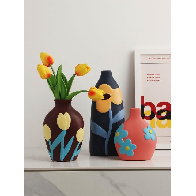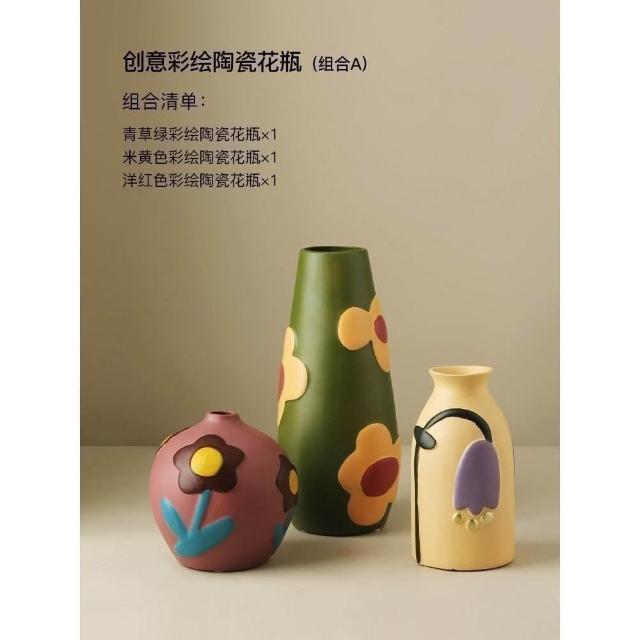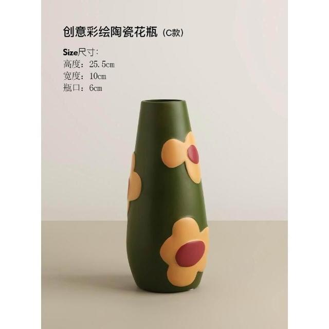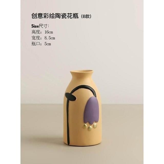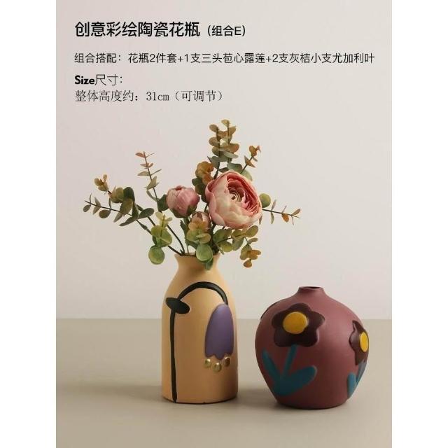 喜可xekoro北歐創意彩繪莫蘭迪陶瓷花瓶擺飾客廳插花高級感家居花瓶