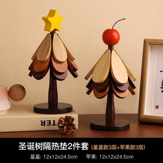 喜可xekoro聖誕樹實木隔熱墊桌墊防燙耐高溫創意鍋墊餐邊櫃擺飾裝飾品
