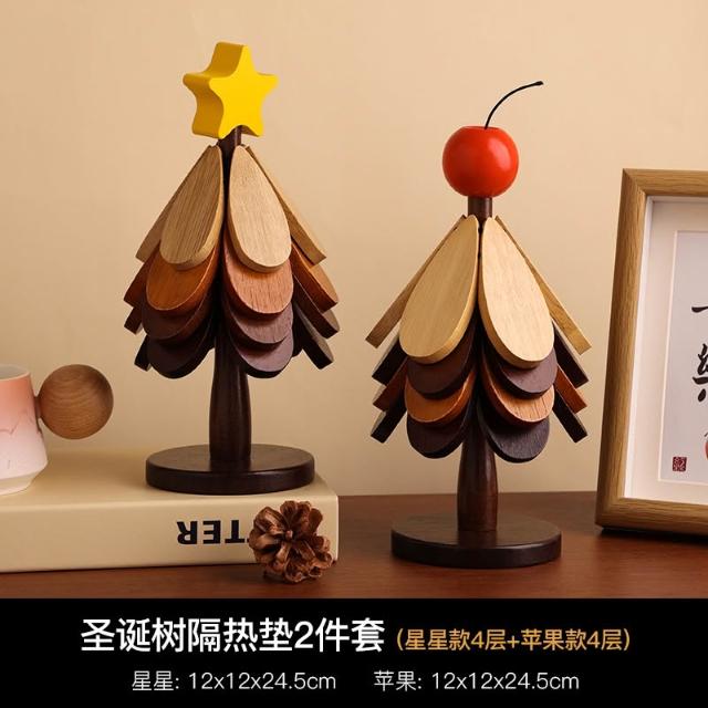 喜可xekoro聖誕樹實木隔熱墊桌墊防燙耐高溫創意鍋墊餐邊櫃擺飾裝飾品
