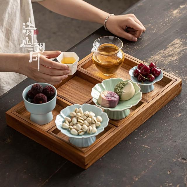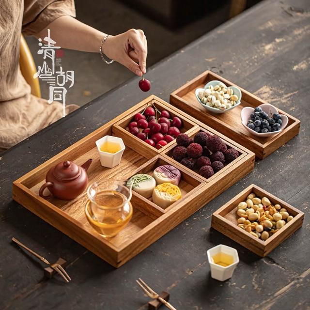 喜可xekoro胡桃木實木茶點盤圍爐煮茶點心盤六宮格拼盤復古零食托盤