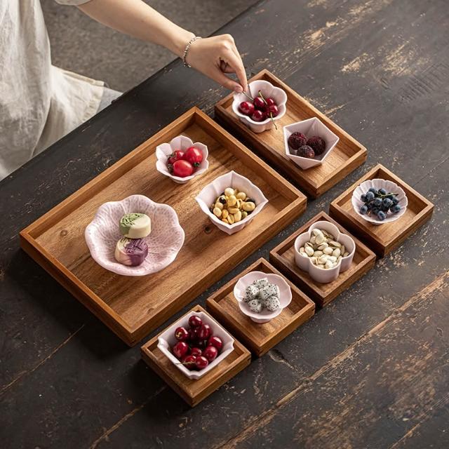 喜可xekoro胡桃木實木茶點盤圍爐煮茶點心盤六宮格拼盤復古零食托盤