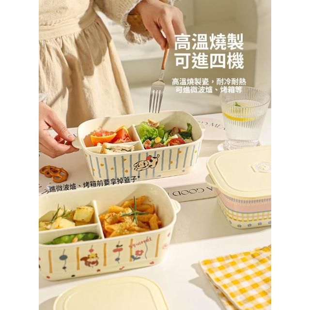 喜可xekoro可愛陶瓷便當盒分格餐盒上班族微波爐專用帶蓋保鮮盒密封便當盒