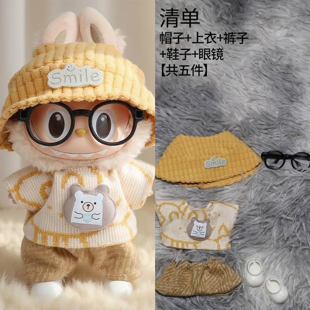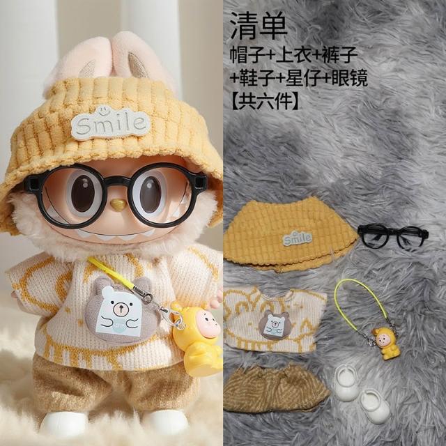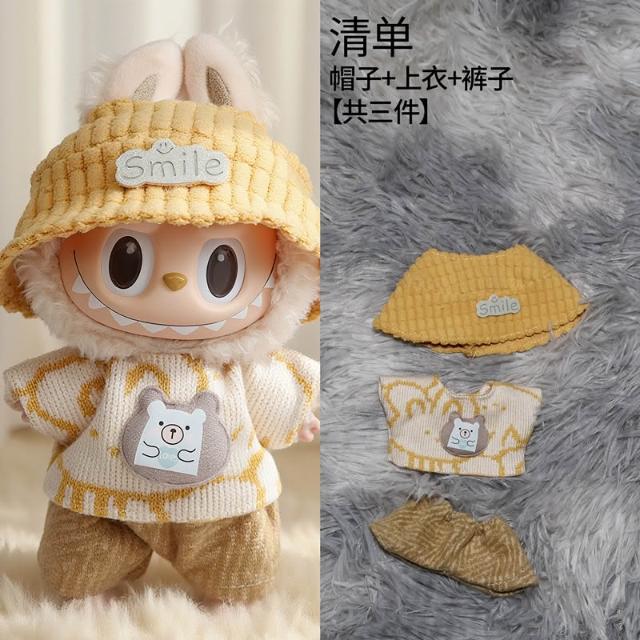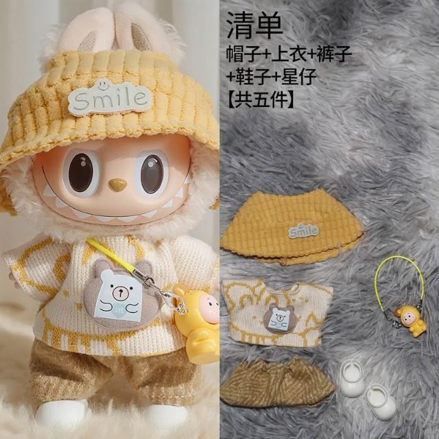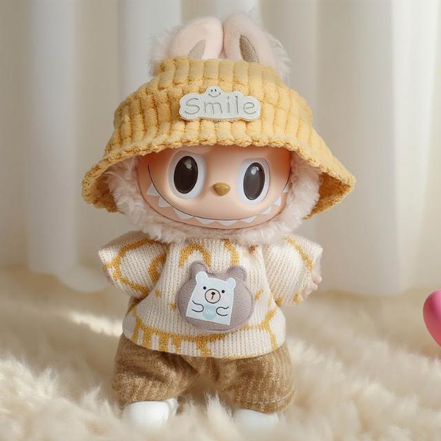 喜可xekoro一二三代LABUBU坐坐派對搪膠娃衣掛件拉布布黃色歡樂帽子毛衣套裝