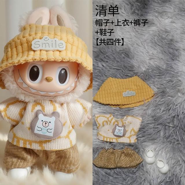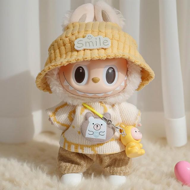 喜可xekoro一二三代LABUBU坐坐派對搪膠娃衣掛件拉布布黃色歡樂帽子毛衣套裝