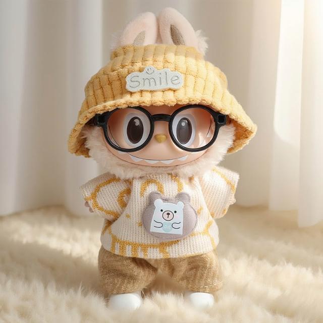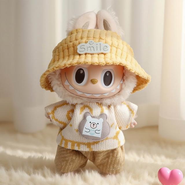 喜可xekoro一二三代LABUBU坐坐派對搪膠娃衣掛件拉布布黃色歡樂帽子毛衣套裝