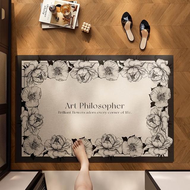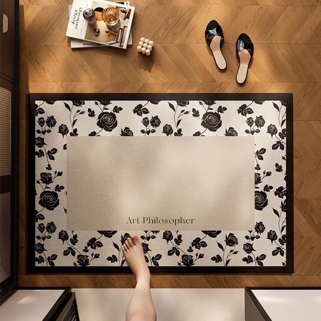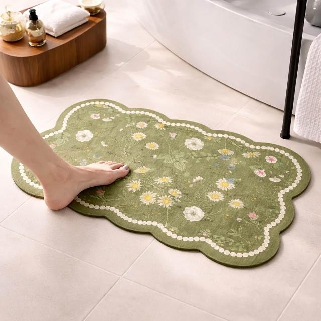 喜可xekoro 加厚硅藻泥防滑浴室腳墊 吸水速乾耐磨 花卉防滑墊 可卷曲收納