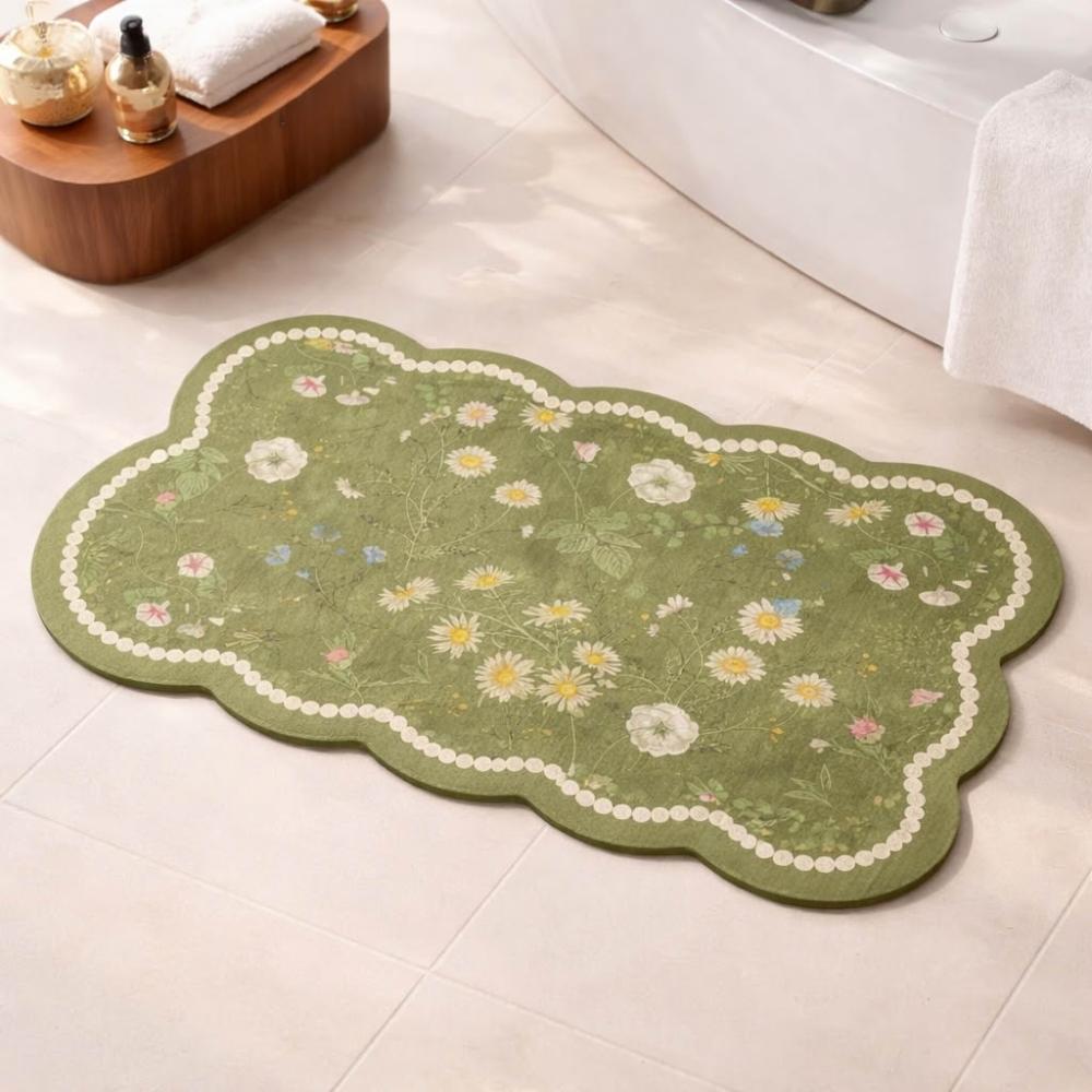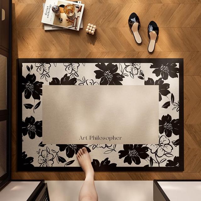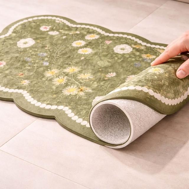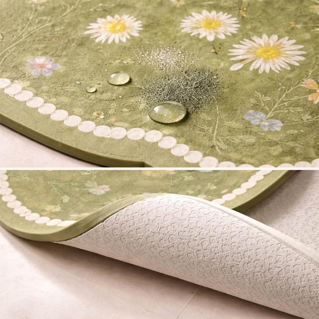 喜可xekoro 加厚硅藻泥防滑浴室腳墊 吸水速乾耐磨 花卉防滑墊 可卷曲收納