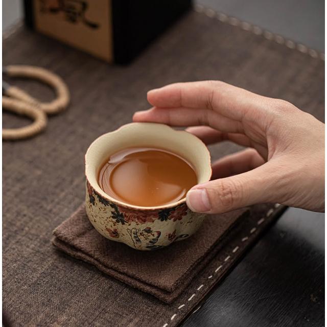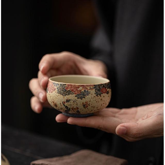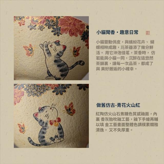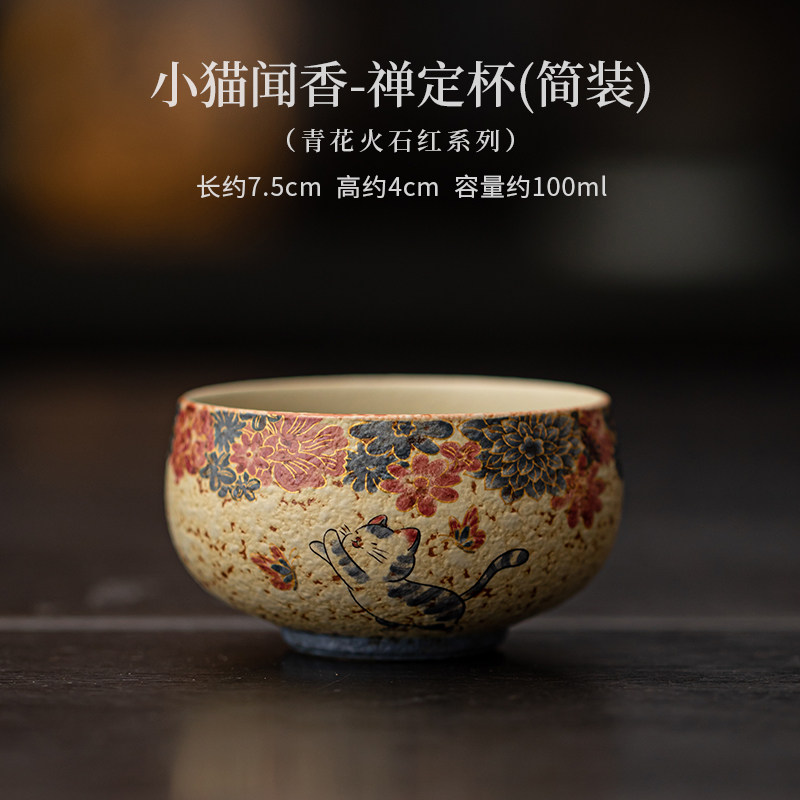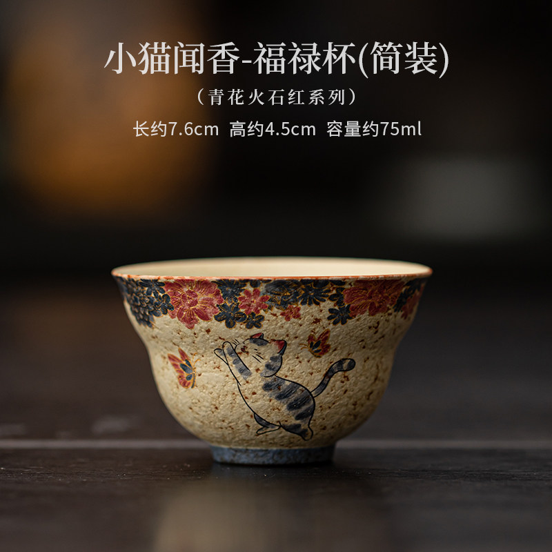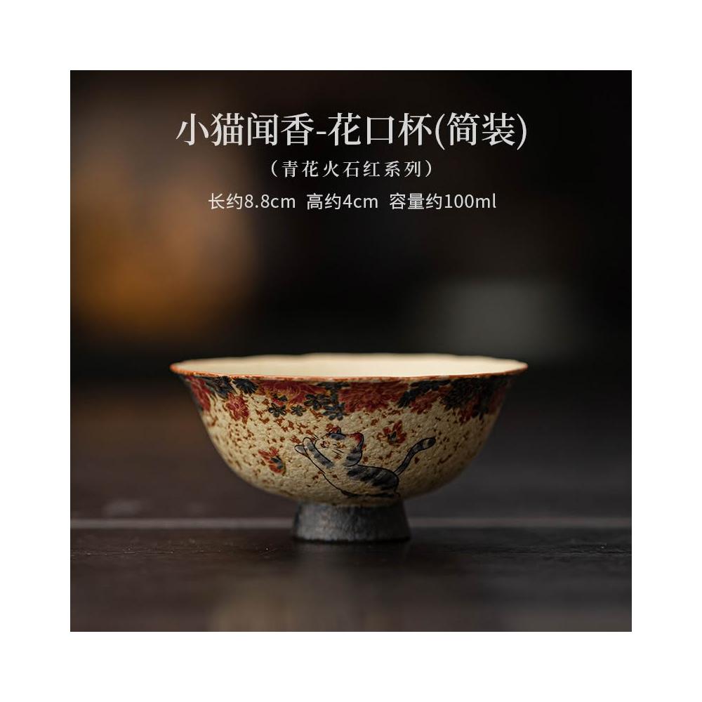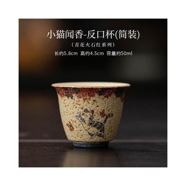 喜可xekoro青花火石紅小貓聞香茶杯陶瓷創意可愛主人杯功夫茶具品茗杯